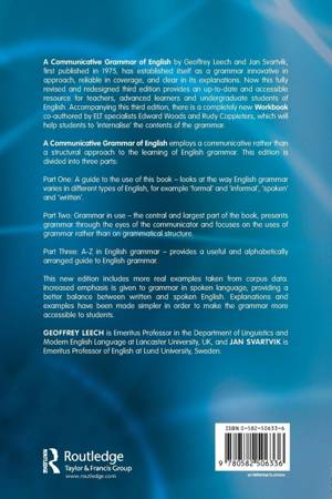 A Communicative Grammar of English has long been established as a grammar innovative in approach, reliable in coverage, and clear in its explanations. This fully revised and redesigned third edition provides up-to-date and accessible help to teachers, advanced learners and undergraduate students of English. Part One looks at the way English grammar varies in different types of English, such as 'formal' and 'informal', 'spoken' and 'written'; Part Two focuses on the uses of grammar rather than on grammatical structure and Part Three provides a handy alphabetically arranged guide to English grammar. A new workbook, The Communicative Grammar of English Workbook also accompanies this edition.