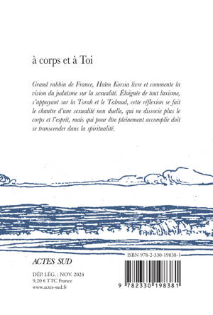 Ancien rabbin de la ville de Reims, aujourd'hui aumônier général israélite de l'armée de l'air française et secrétaire général de l' Association du rabbinat français, Haïm Korsia livre et commente la vision du judaïsme sur la sexualité. Eloignée de tout laxisme, s'appuyant sur la Torah et le Talmud, cette réflexion se fait le chantre d'une sexualité non duelle, qui ne dissocie plus le corps et l'esprit, mais qui pour être pleinement accomplie doit se transcender dans la spiritualité.