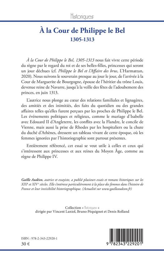 Cet ouvrage tente de faire vivre de l'intérieur la dernière décennie du règne de Philippe le Bel. Nous suivons le souverain presque au jour le jour, de l'arrivée à la Cour de Marguerite de Bourgogne, épouse de l'héritier du trône Louis, devenue reine de Navarre, jusqu'à la veille des fêtes de l'adoubement des princes, en juin 1313. L'autrice nous plonge au coeur des relations familiales et lignagères, des amitiés et des inimitiés, des faits du quotidien ou des grandes affaires telles qu'elles furent perçues par les proches de Philippe le Bel. Les événements politiques et religieux, comme le mariage d'Isabelle avec Edouard II d'Angleterre, les conflits avec la Flandre, le concile de Vienne, mais aussi la prise de Rhodes par les hospitaliers ou la chute du duché d'Athènes, dressent un tableau vivant de cette époque, où les femmes ignorées par l'historiographie sont partout présentes.