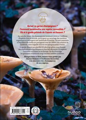 Qu'est-ce qu'un champignon ? Comment reconnaître une espèce comestible? Où et à quelle période de l'année en trouver? Ce guide s'articule en deux parties. La première fournit les explications scientifiques et des conseils pratiques pour profiter au mieux de votre excursion. La seconde est consacrée à l'identification proprement dite : 110 espèces courantes en France et en Europe sont présentées sous forme de fiches, avec pour certaines des idées de recettes. Pour aller plus loin, un carnet pratique donne les coordonnées d'associations, de musées, de sites web scientifiques, ainsi qu'une bibliographie.