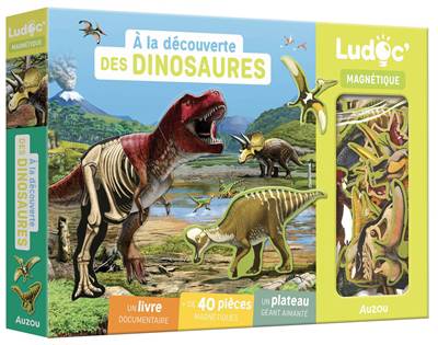 sur les dinosaures, ainsi que + de 35 aimants à replacer sur un grand plateau aimanté.