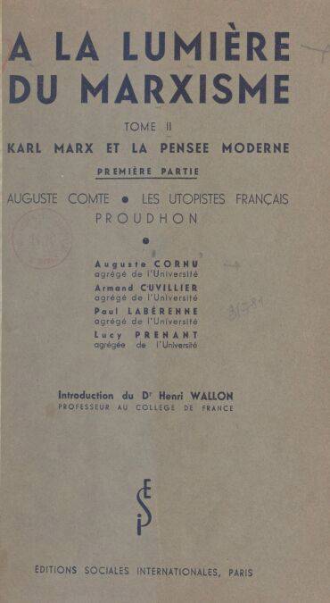 Première partie : Auguste Comte, les Utopistes français, Proudhon. Conférences faites à la commission scientifique du Cercle de la Russie Neuve, en 1935-1936