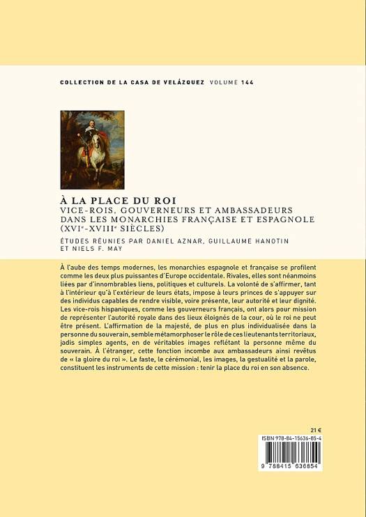À l'aube des temps modernes, les monarchies espagnole et française se profilent comme les deux plus puissantes d'Europe occidentale. Rivales, elles sont néanmoins liées par d'innombrables liens, politiques et culturels. La volonté de s'affirmer, tant à l'intérieur qu'à l'extérieur de leurs états, impose à leurs princes de s'appuyer sur des individus capables de rendre visible, voire présente, leur autorité et leur dignité. Les vice-rois hispaniques, comme les gouverneurs français, ont alors pour mission de représenter l'autorité royale dans des lieux éloignés de la cour, où le roi ne peut être présent. L'affirmation de la majesté, de plus en plus individualisée dans la personne du souverain, semble métamorphoser le rôle de ces lieutenants territoriaux, jadis simples agents, en de véritables images reflétant la personne même du souverain. À l'étranger, cette fonction incombe aux ambassadeurs ainsi revêtus de « la gloire du roi ». Le faste, le cérémonial, les images, la gestualité et la parole, constituent les instruments de cette mission : tenir la place du roi en son absence.