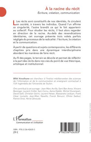 Les récits sont constitutifs de nos identités, ils circulent en société, à travers les individus. Quand l'un affirme sa singularité, l'autre brandit ce qui le fait appartenir au collectif. Pour étudier les récits, il faut alors regarder en direction de la racine. Au-delà des revendications identitaires, cet ouvrage présente trois volets parfois négligés du processus de la radicalité l'écriture, la création et la communication. À partir de questions et sujets contemporains, les différents chapitres pris dans une dynamique interdisciplinaire abordent les manières de faire récit. Au fil des pages, le terrain se dévoile et permet de réfléchir à la part des récits dans nos vies du point de vue théorique, artistique et institutionnel.
