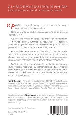 Prendre le temps de manger, c'est peut-être déjà changer notre manière d'être au monde. Dans un monde où tout s'accélère, que reste-t-il du temps de manger Ce livre explore les multiples temporalités de l'alimentation - horaires, durées, rythmes et régularités -, depuis la production agricole jusqu'à la digestion, en passant par la préparation, la cuisson, le service et la dégustation. À la croisée des sciences sociales, des food studies et des sciences de la communication, les auteurs montrent comment chaque moment du repas s'inscrit dans un système complexe d'interactions entre l'individu, la société et l'environnement. Qu'il s'agisse de la lenteur d'une fermentation, du minutage d'une recette médiévale ou contemporaine, du service en restauration ou du repas partagé à un âge avancé, le temps devient ici un révélateur de nos modes de vie, de nos cultures et de notre existence.