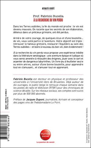 Dans les Terres oubliées, la fin du monde est proche : le vin est devenu mauvais. On raconte que les secrets de son élaboration, détenus dans un précieux grimoire, ont été perdus. Armé de votre courage, de quelques écus et d’une bouteille... de vin, vous voilà parti à l’aventure. Votre objectif est triple : retrouver le fameux grimoire, restaurer l’équilibre au sein des Terres oubliées – et boire à nouveau du bon vin, bien évidemment ! À la recherche du vin perdu vous propose une expérience inédite dans la littérature œnologique : une aventure épique et ludique où vous serez amené à faire des choix, résoudre des énigmes, jouer avec le sort et arpenter de dangereux labyrinthes. Un livre-jeu à lire seul ou entre amis, autour d’une bonne bouteille, pour apprendre tout en s’amusant... et s’amuser tout en apprenant.