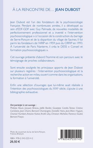 Jean Dubost est l’un des fondateurs de la psychosociologie française. Il a inventé « l’intervention psychosociologique » à l’occasion de la construction du barrage de Serre-Ponçon et de la disparition du village de Savines. Il fut parmi les fondateurs de l’ARIP en 1959 puis du CIRFIP en 1993. À l’université de Paris Nanterre, il créa le DESS « Conseil et formation psychosociologiques ». Cet ouvrage présente d’abord l’homme et son parcours avec le témoignage de proches collaborateurs. Sont ensuite soulignés les principaux apports de Jean Dubost sur plusieurs registres : l’intervention psychosociologique et la recherche-action en milieu ouvert comme dans les organisations, la formation à l’université.