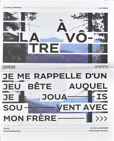 À la marge des enjeux de politique mémorielle, À la Vôtre se veut un rappel au temps, un récit en forme d'hommage à la grande porteuse de souvenirs, héroïne que l'histoire laisse toujours de côté. C'est une nouvelle ou un poème, quelques pages légères à lire comme on marche : distraitement ou avec attention, avec le vent dans les feuilles et ces pauses, qui laissent le temps d'écouter et de voir toute la mémoire du paysage.