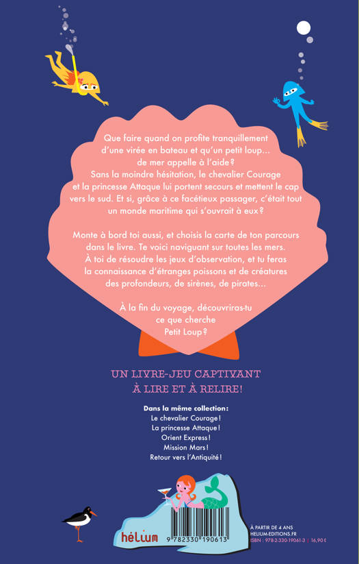 Dans cette nouvelle aventure, le Chevalier Courage et la Princesse Attaque nous embarquent avec leur nouveau compagnon, Petit loup, sur les mers et les océans, à la découverte des créatures marines et aussi des profondeurs ! Un livre captivant à lire et à relire, où les jeux d'observation se succèdent et où le petit lecteur choisit son parcours. À partir de 4 ans.