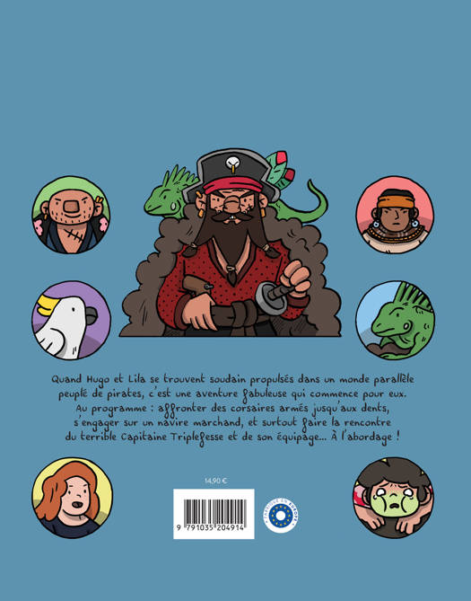 Quand Hugo et Lila se trouvent soudain propulsés dans un monde parallèle peuplé de pirates, c'est une aventure fabuleuse qui commence pour eux. Au programme:affronter des corsaires armés jusqu'aux dents, s'engager sur un navire marchand, et surtout faire la rencontre du terrible Capitaine Triplefesse et de son équipage... À l'abordage !