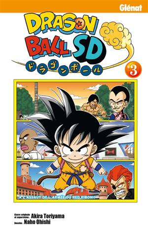 Parti à la recherche de la Su Shinchu de son grand-père, Goku se retrouve aux prises avec la redoutable armée du Red Ribon qui convoite également les Dragon Balls ! Après s’être débarrassé du coriace commandant Blue, Goku récupère San Shinchu, la boule à trois étoiles… Évidemment, il ne va pas s’arrêter là ! Dans ce volume, préparez-vous à découvrir la version SD d’un vieil ennemi : Tao Pai Pai !!