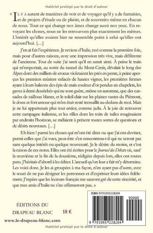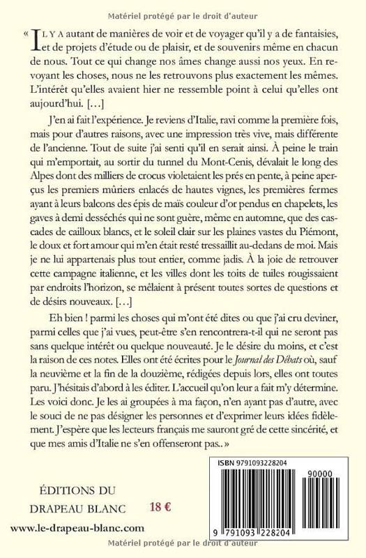 Il y a autant de manières de voir et de voyager qu'il y a de fantaisies, et de projets d'étude ou de plaisir, et de souvenirs même en chacun de nous. Tout ce qui change nos âmes change aussi nos yeux. En revoyant les choses, nous ne les retrouvons plus exactement les mêmes. L'intérêt qu'elles avaient hier ne ressemble point à celui qu'elles ont aujourd'hui. On croit recommencer un voyage, mais l'illusion tombe vite : on est allé dans le même pays, et c'est tout.