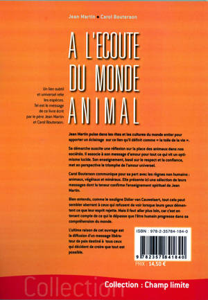 Un lien subtil et universel relie les espèces. Tel est le message de ce livre. L'ultime raison de cet ouvrage est la diffusion d'un message libérateur de paix destiné à tous ceux qui décident de croire que tout est possible… ? Jean Martin puise dans les rites et les cultures du monde entier pour apporter un éclairage sur ce qu’il définit comme la « toile de la vie ». Sa démarche suscite une réflexion sur la place des animaux dans nos sociétés. Il associe à son message d’amour pour tout ce qui vit un optimisme lucide. Son enseignement, basé sur le respect et la confiance, met en perspective le triomphe de l’amour universel. « Bien entendu, comme le souligne Didier van Cauwelaert dans sa préface, tout cela peut sembler aberrant à ceux qui refusent de voir lorsque leurs yeux démentent ce que leur esprit rejette. Mais il faut aller plus loin, car c’est en tenant compte de ce qui le dépasse que l’être humain progresse dans sa compréhension du monde. »