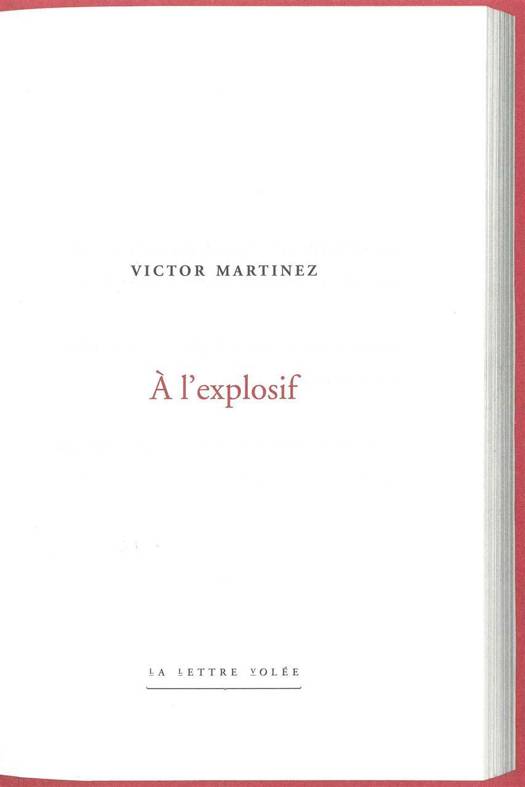 Poète réputé et critique affirmé, victor Martinez est l'une des voix les plus fortes de la jeune génération de poètes de langue française et manie la pensée avec une extrême sensibilité.