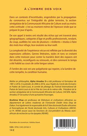 Dans un contexte d'incertitudes, engendrées par la propagation du coronavirus sur l'intégralité du globe terrestre, la section sénégalaise de la Communauté Africaine de Culture avait au moins cette certitude : c'est au moment même de l'épreuve virale que se prépare le jour d'après. De son appel à textes ont résulté des échos qui ont traversé aires géographiques, catégories d'âge et profils professionnels, rendant, du coup, audibles les voix de plusieurs « résilients » résolus à faire des mots leur refuge, leur exutoire ou leur outil. Genres littéraires, styles et tons se croisent dans cette moisson pour conter la manière dont des espaces ont été désertés, reconfigurés ou retrouvés, et dire comment le temps a été habité au cours de cette longue saison.