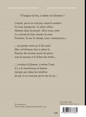 Ce deuxième volume est placé sous les espèces du feu : incendies de l’histoire, flammes des passions non tristes, du désir et de l’amour, brasier mystique ou alchimique. Les chants du deuxième volume, intitulé À même la flamme (chants des chants 2) sont répartis de façon arbitraire selon les signes du zodiaque, mais sans suivre l’ordre de leur déclinaison : chaque chant est placé sous l’un de ces signes : Pour le livre 2, on trouve : chant 1, bélier ; chant 2, cancer ; chant 3, lion ; chant 4, scorpion ; chant 5, sagittaire ; chant 6, poissons. Chacun de ces chants reçoit des poèmes consacrés à des personnes nées ou décédées dans la période couverte par le signe attribué au chant, mais aussi à des événements qui se sont déroulés dans cette même période. Il s’agit là d’une contrainte organisationnelle fixée de façon tout à fait arbitraire. L’intention est d’aboutir à une structuration à la fois labyrinthique, à la Piranèse, et spiralique, telle une vis sans fin. Certains passages d’épopées de tous les temps, les populaires et les savantes, y sont réécrits : Gilgamesh, Iliade, Odyssée, Énéide, et autres épopées européennes (Dighénis, Beowulf, Edda, Kalevala…), africaines (Soundiata, Kebra Negast…), asiatiques (Mahābhārata, Gesar, Livre des Rois, Kim-Vân-Kiêu…), amérindiennes (Tabaré, Auracana, Hiawatha…), etc. Mais des personnages historiques, les uns connus, les autres méconnus ou anonymes, y sont aussi évoqués (Hubertine Auclert, Dolores Huerta, Charlotte Salomon, le Groupe Manouchian, Gloria Steinem, César Chávez, Manuel Quintín Lame, etc.), ainsi que des héros de notre temps, la plupart du temps anonymes ou peu connus : victimes d’attentats, noyés de Méditerranée, SDF, leaders des sans-terre d’Amérique latine, etc. Il y est aussi rendu hommage à des voix qui sont aussi des porte-voix : poètes ou artistes de tous les continents et de toutes les langues (Gerty Dambury, Gonzalo Rojas, Mutsuo Takahashi, Jean Boudou, Lance Hanson, Makhali-Phāl, Giegj Fishta, Susy Delgado, Bolamba Lokolé, Ài Qīng, Léon-Gontran Damas, etc.). Tous les règnes du vivant y ont des représentants acquérant le statut de héros à part entière. Beaucoup de langues sont présentes par des citations dûment traduites, par amour des langues et de la diversité des façons d’habiter le monde qu’elles expriment et chantent. Quelques poèmes sont entièrement ou en partie composés comme des centons, c’est-à-dire des séquences juxtaposant en mosaïque des prélèvements épars réalisés sur un œuvre ou un ensemble de textes. Tous ces traits distinctifs révèlent qu’il y a là une aspiration, sinon à l’exhaustivité, impossible par définition, du moins à une accolade la plus large possible à tout ce qui vit ou a vécu.