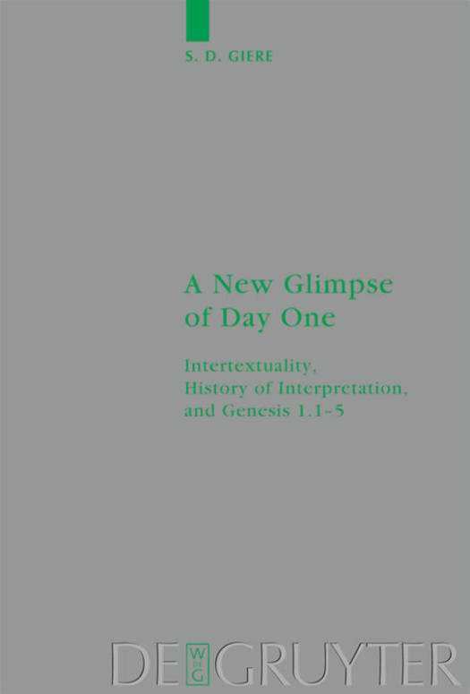 Informed by the understanding that all texts are intertexts, this work develops and employs a method that utilizes the concept of intertextuality for the purpose of exploring the history of interpretation of a biblical text. With Day One, Genesis 1.1-5, as the primary text, the intertextuality of this biblical text is investigated in its Hebrew (Masoretic Text) and Greek (Septuagint) contexts. The study then broadens to take up the intertextuality of Day One in other Hebrew and Greek texts up to c. 200 CE, moving from Hebrew texts such as Ben Sira and the Dead Sea Scrolls to Greek texts such as Josephus, Philo, the New Testament, and early Christian texts. What emerges from this is a new glimpse of the intertextuality of Day One that provides insight into the complexity of the intertextuality of a biblical text and the role that language plays in intertextuality and interpretation. In addition to the methodological insights that this approach provides to the history of interpretation, the study also sheds light on textual and theological questions that relate to Day One, including the genesis of creatio ex nihilo.