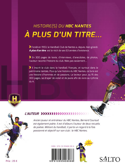 Fondé en 1953, le Handball club de Nantes a, depuis, bien grandi. "À plus d'un titre"... est le récit de ses 63 années d'existence. En 300 pages de texte, d'interviews, d'anecdotes, de photos, l'auteur raconte l'histoire du club. Mais pas seulement... Il inscrit le club dans le handball français, et surtout dans le patrimoine nantais. Plus qu’une histoire du HBC Nantes, ce livre est une histoire d’hommes et de passions. Le lecteur peut, au fil des 300 pages, se draper de violet et de jaune afin de vivre au rythme du « H ».