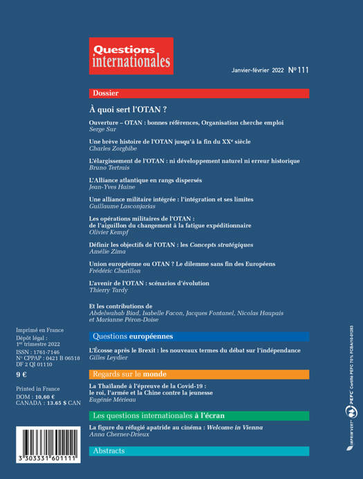 Malmenées durant la présidence de Donald Trump, les relations entre Européens et Américains au sein de l’OTAN sont moins tendues depuis l'arrivée au pouvoir de Joe Biden. Mais la première alliance militaire du monde pèse-t-elle encore face à la Chine et à la Russie ? Quel est son rôle dans les guerres sans fin du Moyen-Orient (Syrie, Libye, Irak...) ou dans les dossiers de la cybersécurité et du terrorisme ? A l'heure où l’OTAN doit se retirer d'Afghanistan dans la précipitation, dresser un bilan critique de son ambition et de sa stratégie apparaît plus que jamais nécessaire.