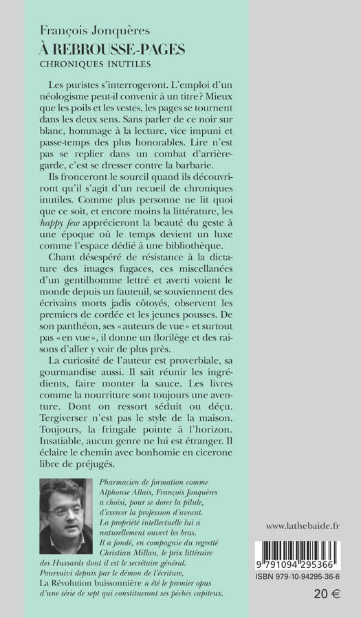 Les puristes s’interrogeront. L’emploi d’un néologisme peut-il convenir à un titre ? Mieux que les poils et les vestes, les pages se tournent dans les deux sens. Sans parler de ce noir sur blanc, hommage à la lecture, vice impuni et passe-temps des plus honorables. Lire n’est pas se replier dans un combat d’arrière-garde, c’est se dresser contre la barbarie. Ils fronceront le sourcil quand ils découvriront qu’il s’agit d’un recueil de chroniques inutiles. Comme plus personne ne lit quoi que ce soit, et encore moins la littérature, les happy few apprécieront la beauté du geste à une époque où le temps devient un luxe comme l’espace dédié à une bibliothèque. Chant désespéré de résistance à la dictature des images fugaces, ces miscellanées d’un gentilhomme lettré et averti voient le monde depuis un fauteuil, se souviennent des écrivains morts jadis côtoyés, observent les premiers de cordée et les jeunes pousses. De son panthéon, ses « auteurs de vue » et surtout pas « en vue », il donne un florilège et des raisons d’aller y voir de plus près. La curiosité de l’auteur est proverbiale, sa gourmandise aussi. Il sait réunir les ingrédients, faire monter la sauce. Les livres comme la nourriture sont toujours une aventure. Dont on ressort séduit ou déçu. Tergiverser n’est pas le style de la maison. Toujours, la fringale pointe à l’horizon. Insatiable, aucun genre ne lui est étranger. Il éclaire le chemin avec bonhomie en cicerone libre de préjugés.