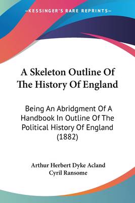 A Skeleton Outline of the History of England is a book written by Arthur Herbert Dyke Acland in 1882. The book is an abridgment of a handbook that outlines the political history of England. It provides a condensed overview of the major events and developments that have shaped the country's history from ancient times to the 19th century. The book is divided into several sections, each covering a different period in English history. It includes information on the Anglo-Saxon period, the Norman Conquest, the Wars of the Roses, the Tudor dynasty, the English Civil War, and the Victorian era. The book is intended as a quick reference guide for students and scholars of English history who want to gain a basic understanding of the country's political development. It is written in a clear and concise style, making it accessible to readers of all levels. Overall, A Skeleton Outline of the History of England is a valuable resource for anyone interested in the history of England.This scarce antiquarian book is a facsimile reprint of the old original and may contain some imperfections such as library marks and notations. Because we believe this work is culturally important, we have made it available as part of our commitment for protecting, preserving, and promoting the world's literature in affordable, high quality, modern editions, that are true to their original work.