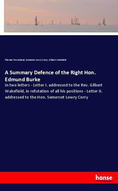 A Summary Defence of the Right Hon. Edmund Burke - in two letters - Letter I. addressed to the Rev. Gilbert Wakefield, in refutation of all his positions - Letter II. addressed to the Hon. Somerset Lowry Corry is an unchanged, high-quality reprint of the original edition of 1796. Hansebooks is editor of the literature on different topic areas such as research and science, travel and expeditions, cooking and nutrition, medicine, and other genres. As a publisher we focus on the preservation of historical literature. Many works of historical writers and scientists are available today as antiques only. Hansebooks newly publishes these books and contributes to the preservation of literature which has become rare and historical knowledge for the future.