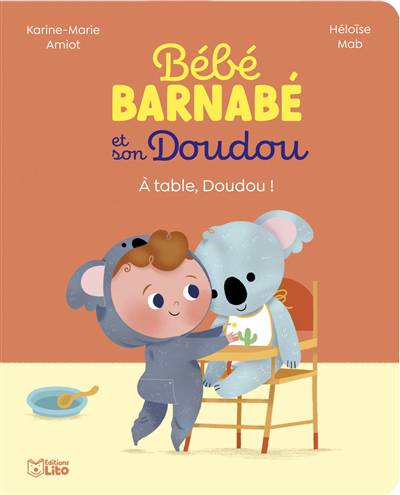 Bébé Barnabé assoit Doudou dans la chaise haute. À table ! « Tu ne veux pas manger ? Alors c'est pour moi ! »