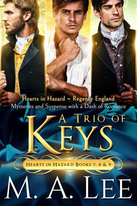 A Trio of Keys collects books 7,8, and 9 in the Hearts in Hazard series of Regency mysteries and suspense.