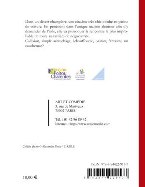 Dans un désert champêtre, une citadine très chic tombe en panne de voiture. En pénétrant dans l'unique maison alentour afin d'y demander de l'aide, elle va provoquer la rencontre la plus improbable de toute sa carrière de négociatrice. Collision, simple accrochage, échauffourée, baston, fantasme ou cauchemar?