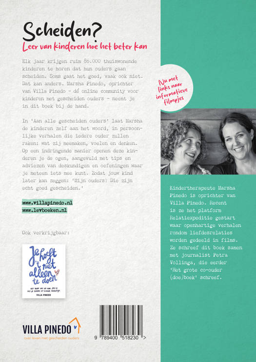 Elk jaar krijgen 86.000 thuiswonende kinderen te horen dat hun ouders gaan scheiden. Soms gaat het goed, vaak ook niet. Dat kan anders. Marsha Pinedo, oprichter van Villa Pinedo – dé online community voor kinderen met gescheiden ouders – neemt je in dit boek bij de hand.