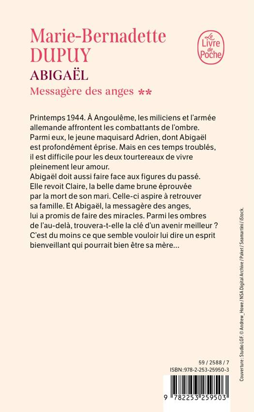 Abigaël doit aussi faire face aux figures du passé. Elle revoit Claire, la belle dame brune éprouvée par la mort de son mari. Celle-ci aspire à retrouver sa famille. Et Abigaël, la messagère des anges, lui a promis de faire des miracles. Parmi les ombres de l’au-delà, la jeune femme trouvera-t-elle la clé d’un avenir meilleur ? C’est du moins ce que semble vouloir lui dire un esprit bienveillant qui pourrait bien être sa mère…
