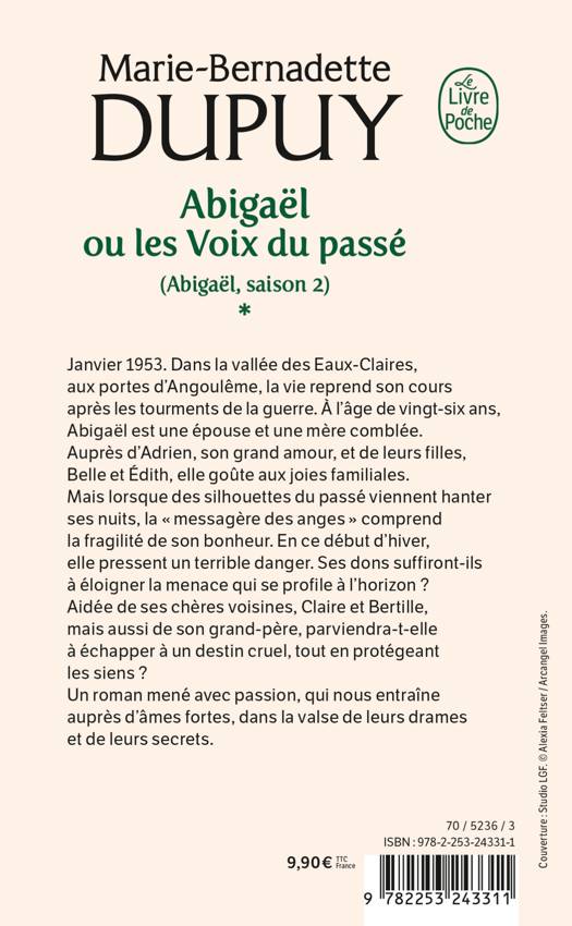 Janvier 1953. Dans la vallée des Eaux-Claires, aux portes d'Angoulême, la vie reprend son cours après les tourments de la guerre. À l'âge de vingt-six ans, Abigaël est une épouse et une mère comblée. Auprès d’Adrien, son grand amour, et de leurs filles, Belle et Édith, elle goûte aux joies de la vie de famille. Mais lorsque des silhouettes du passé viennent hanter ses nuits, la « messagère des anges » comprend la fragilité de son bonheur. En ce début d'hiver, elle pressent un terrible danger. Ses dons suffiront-ils à éloigner la menace qui se profile à l'horizon ? Aidée de ses chères voisines, Claire et Bertille, mais aussi de son grand-père, parviendra-t-elle à échapper à un destin cruel, tout en protégeant ceux qu'elle chérit ?