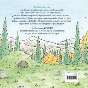 Il était une fois une charmante petite marmotte nommée Abigaëlle. Qu’elle était drôle, avec ses poils bruns-gris, ses yeux noisette roulant vivement de droite à gauche…, Qu’elle était forte, avec ses robustes griffes et sa silhouette trapue ! Mais quand il s'agit de préparer le terrier pour l'hiver, Abigaëlle aimerait bien choisir avant ses frères et soeurs... "Une Parole pour grandir" : des contes charmants et profonds pour faire réfléchir les plus jeunes aux valeurs de l'Évangile. Dès 4 ans.