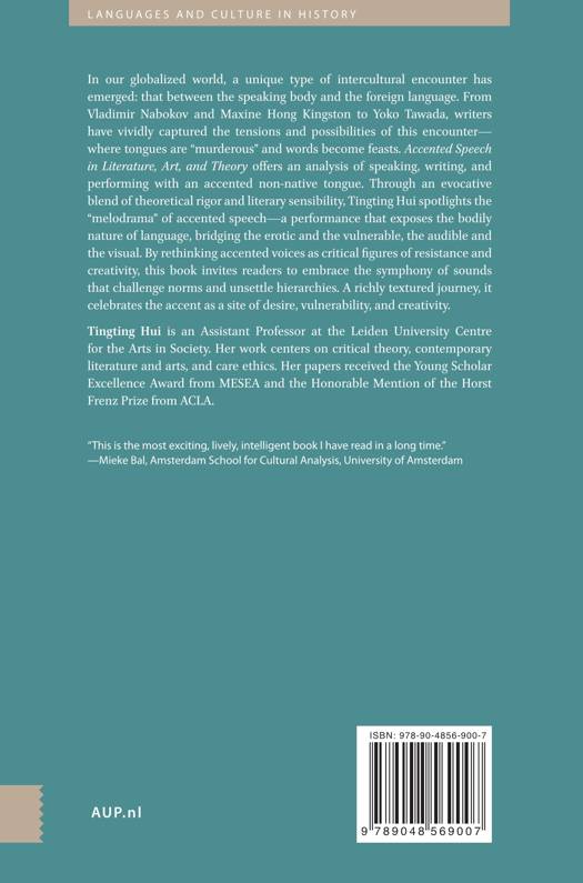 In our globalized world, a unique type of intercultural encounter has emerged: that between the speaking body and the foreign language. From Vladimir Nabokov and Maxine Hong Kingston to Yoko Tawada, writers have vividly captured the tensions and possibilities of this encounter--where tongues are "murderous" and words become feasts. Accented Speech in Literature, Art, and Theory offers an analysis of speaking, writing, and performing with an accented non-native tongue. Through an evocative blend of theoretical rigor and literary sensibility, Tingting Hui spotlights the "melodrama" of accented speech--a performance that exposes the bodily nature of language, bridging the erotic and the vulnerable, the audible and the visual. By rethinking accented voices as critical figures of resistance and creativity, this book invites readers to embrace the symphony of sounds that challenge norms and unsettle hierarchies. A richly textured journey, it celebrates the accent as a site of desire, vulnerability, and creativity.