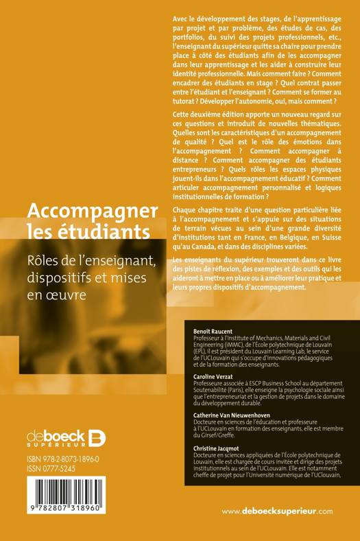 À partir d’une centaine de situations vécues en France, en Belgique, en Suisse et au Québec dans une grande variété d’institutions et de disciplines, les enseignants du supérieur trouveront dans ce livre des pistes de réflexion, des exemples et des outils qui les aideront à mettre en place ou améliorer leur propre dispositif d’accompagnement.