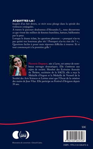 Inspiré d'un fait divers, ce récit nous plonge dans la spirale des violences conjugales. A travers le parcours douloureux d'Alexandra L., nous découvrons ce que vivent des milliers de femmes humiliées, battues, bâillonnées par la peur. Lorsque le drame éclate, les questions pleuvent : « pourquoi n'as-tu pas quitté ton bourreau plus tôt ? Pourquoi n'as-tu rien dit ? »... Questions faciles à poser mais réponses difficiles à trouver. Et si tout commençait à la première gifle ?