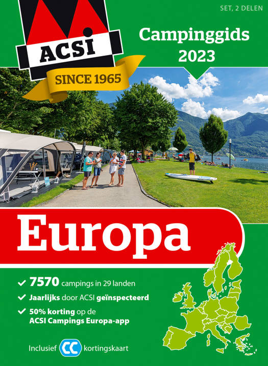De ideale camping voor uw vakantie: wij kennen hem! Snel en eenvoudig een camping vinden die bij u past? Dat doet u met de tweedelige ACSI Campinggids Europa! In deze ultieme campinggids vindt u alles over maar liefst 7.950 campings in 29 verschillende landen. Heel handig tijdens de voorbereiding op uw kampeervakantie en ook ideaal voor onderweg. Want waar u ook heen wilt, met dit overzicht heeft u alle informatie altijd bij de hand. Van de Spaanse Costa’s tot de Italiaanse Rivièra en van kampeerland-in-opkomst Slovenië tot de Franse Provence: alle campings in deze gids worden jaarlijks door onze medewerkers geïnspecteerd op ruim 200 voorzieningen. Dat zorgt voor complete én betrouwbare informatie waarmee u zorgeloos op pad kunt!