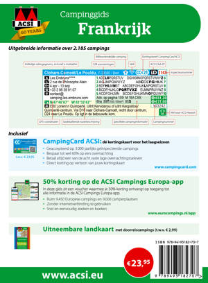 Met de CampingCard ACSI-kortingskaart overnacht u in het laagseizoen tegen een vast en voordelig tarief (€ 13, € 15, € 17, € 19, € 21, € 23, € 25 of € 27 per nacht) op 3.000 campings in 25 Europese landen. De kortingskaart zit bijgesloten in de gids en is voorzien van een QR-code. Met de QR-code kunt u uw kortingskaart online registeren. Zodra u dit heeft gedaan kan de camping uw kortingskaart scannen en checkt u extra snel in. U kunt ook de achterkant van de kortingskaart voorzien van uw gegevens. De camping kan deze dan handmatig overnemen.