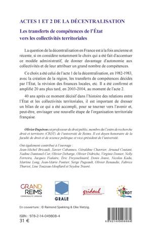 Les transferts de compétences de l'Etat vers les collectivités territoriales. 40 ans de déplacement des politiques publiques