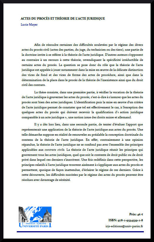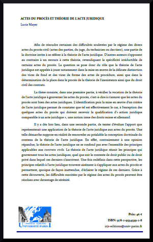 représenterait une application de la théorie de l'acte juridique aux actes du procès. Une