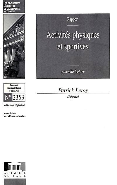 Rapport en nouvelle lecture sur le projet de loi, modifié par le Sénat, modifiant la loi du 16 juillet 1984 relative à l'organisation et à la promotion des activités physiques et sportives.