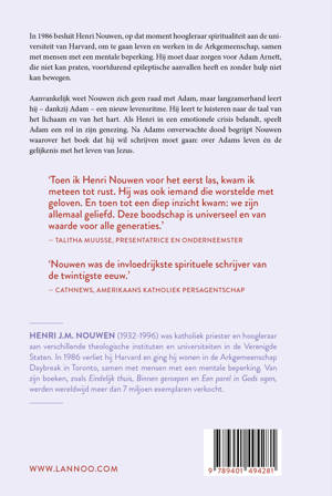 In 1986 besluit Henri Nouwen, op dat moment hoogleraar spiritualiteit aan de universiteit van Harvard, om te gaan leven en werken in de Arkgemeenschap, samen met mensen met een mentale beperking. Hij moet daar zorgen voor Adam Arnett, die niet kan praten, voortdurend epileptische aanvallen heeft en zonder hulp niet kan bewegen.