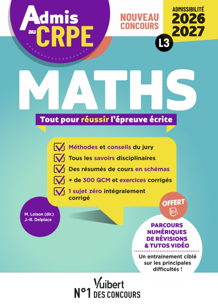 aux méthodes et conseils de vrais jury de concours ; à des tests d'autoévaluation pour personnaliser vos révisions ; à des fiches de cours aérées pour maîtriser l’ensemble des savoirs disciplinaires ; à des résumés de cours en schéma 100 % visuels ; à + de 300 QCM et exercices corrigés pour vous entrainer de manière efficace ; à 1 sujet zéro corrigé et commenté pour être prêt pour le jour J.OFFERT en ligne :