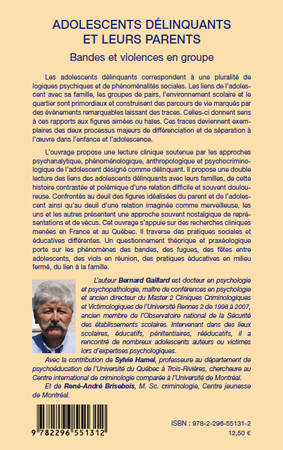 Cet ouvrage propose une lecture clinique soutenue par les approches psychanalytique, phenoménologique, anthropologique et psychocriminologique de l'adolescent désigné comme délinquant. Il s'appuie sur des recherches cliniques menées en France et au Québec. Il questionne les phénomènes des bandes, des fugues, des fêtes entre adolescents, des viols en réunion, des pratiques éducatives en milieu fermé, du lien à la famille.