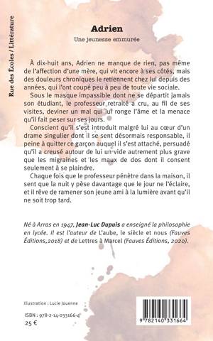 À dix-huit ans, Adrien ne manque de rien, pas même de l'affection d'une mère, qui vit encore à ses côtés, mais des douleurs chroniques le retiennent chez lui depuis des années, qui l'ont coupé peu à peu de toute vie sociale. Sous le masque impassible dont ne se départit jamais son étudiant, le professeur retraité a cru, au fil de ses visites, deviner un mal qui lui ronge l'âme et la menace qu'il fait peser sur ses jours. Conscient qu'il s'est introduit malgré lui au cur d'un drame singulier dont il se sent désormais responsable, il peine à quitter ce garçon auquel il s'est attaché, persuadé qu'il a creusé autour de lui un vide autrement plus grave que les migraines et les maux de dos dont il consent seulement à se plaindre. Chaque fois que le professeur pénètre dans la maison, il sent que la nuit y pèse davantage que le jour ne l'éclaire, et il rêve de ramener son jeune ami à la lumière avant qu'il ne soit trop tard.