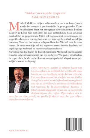 Zodra hij afstudeert, biedt het prestigieuze advocatenkantoor Bendini, Lambert & Locke hem niet alleen een zeer aantrekkelijke baan aan, maar overlaadt het de pasgetrouwde Mitchell ook nog eens met extraatjes zoals een vorstelijk salaris, een prachtig huis met een zeer lage hypotheek en talrijke bonussen. Niets laat het kantoor onbeproefd om het Mitchell naar de zin te maken. Er moet natuurlijk wel wat tegenover staan: absolute loyaliteit, een negentigurige werkweek en haast onhaalbare resultaten.
