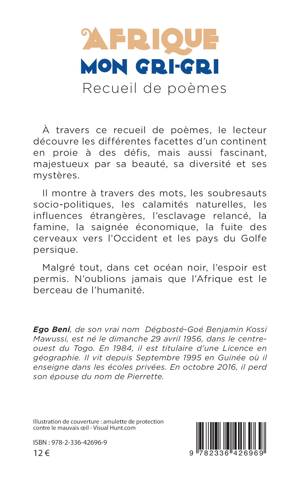 À travers ce recueil de poèmes, le lecteur découvre les différentes facettes d'un continent en proie à des défis, mais aussi fascinant, majestueux par sa beauté, sa diversité et ses mystères. Il montre à travers des mots, les soubresauts socio-politiques, les calamités naturelles, les influences étrangères, l'esclavage relancé, la famine, la saignée économique, la fuite des cerveaux vers l'Occident et les pays du Golfe persique. Malgré tout, dans cet océan noir, l'espoir est permis. N'oublions jamais que l'Afrique est le berceau de l'humanité.