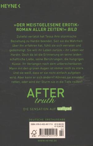 Zutiefst verletzt hat Tessa ihre stürmische Beziehung zu Hardin beendet. Seit sie die Wahrheit über ihn erfahren hat, fühlt sie sich verraten und gedemütigt. Sie will ihr Leben zurück - ihr Leben vor Hardin. Doch da ist die Erinnerung an seine leidenschaftliche Liebe, seine Berührungen, die hungrigen Küsse. Ihr Verlangen nach dem unberechenbaren Mann mit den grünen Augen ist immer noch zu stark. Und sie weiß, dass er sie nicht einfach aufgeben wird. Aber kann er sich ändern? Können sie einander retten, oder wird der Sturm sie in die Tiefe reißen?