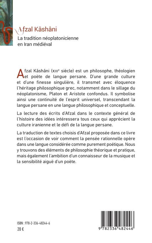 Afzal Kâshâni (XIIIe siècle) est un philosophe, théologien et poète de langue persane. D’une grande culture et d’une finesse singulière, il transmet avec éloquence l’héritage philosophique grec, notamment dans le sillage du néoplatonisme, Platon et Aristote confondus. Il symbolise ainsi une continuité de l’esprit universel, transcendant la langue persane en une langue philosophique et conceptuelle. La lecture des écrits d’Afzal dans le contexte général de l’histoire des idées intéressera tous ceux qui apprécient la culture iranienne et le défi de la langue persane. La traduction de textes choisis d’Afzal proposée dans ce livre est l’occasion de voir comment la pensée rationnelle opère dans une langue considérée comme purement poétique. Nous y trouvons des éléments de philosophie théorique et pratique, mais également l’ambition d’un connaisseur de la musique et la sensibilité aiguë d’un poète.
