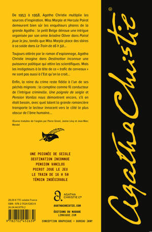 Enfin, la reine du crime reste fidèle à l’un de ses péchés mignons : la comptine comme fil conducteur de l’intrigue criminelle. Une poignée de seigle et Pension Vanilos nous démontrent encore, s’il en était besoin, avec quel talent la grande romancière transporte le lecteur innocent vers le côté le plus obscur de l’âme humaine…